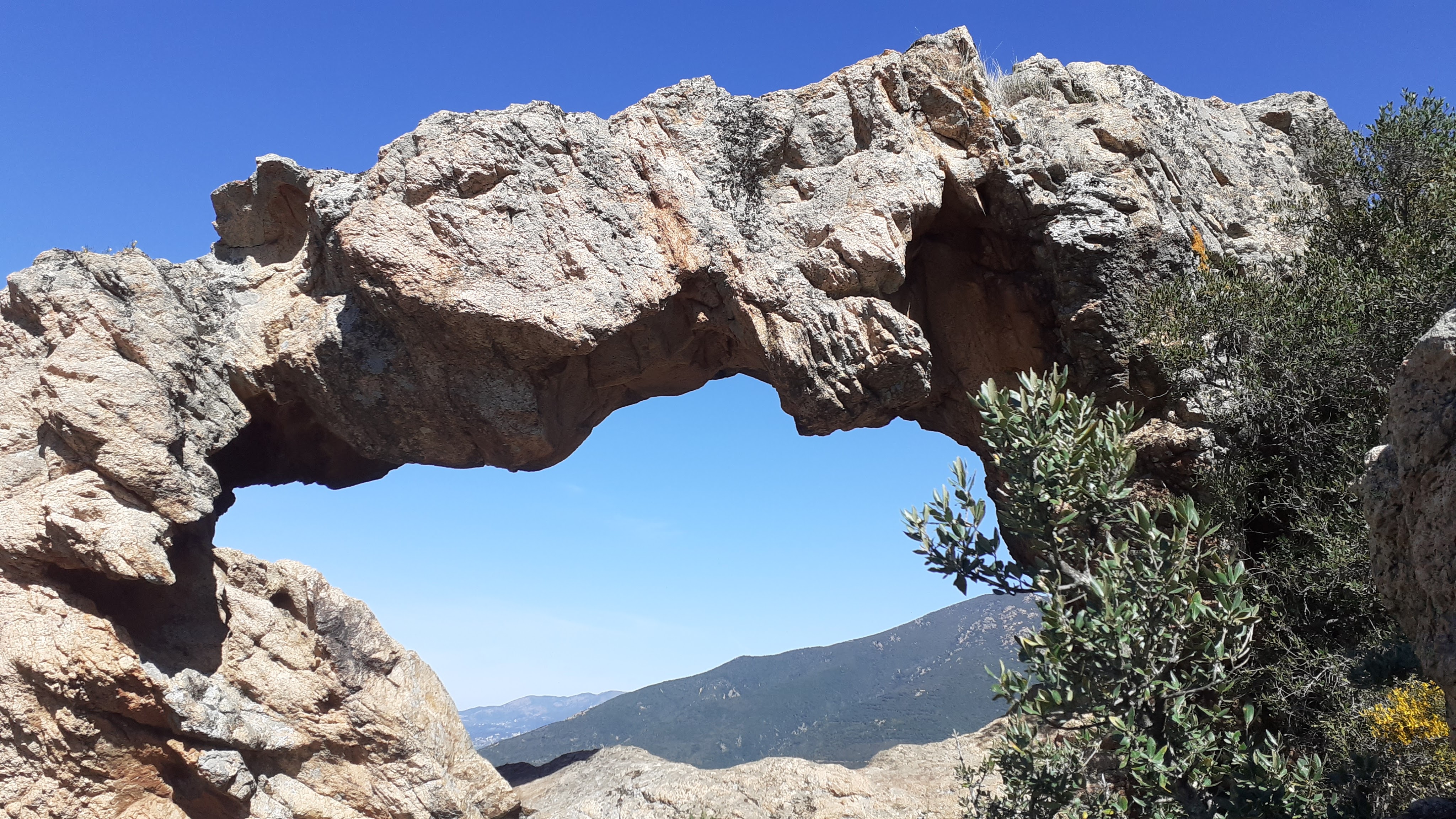 “This was s favourite walk for us as it is on our doorstep. Not well waymarked and with some scrambles, but a fine rock arch and a medieval fortress hilltop with great panoramic views over the Prunelli valley and the mountains behind. PLEASE NOTE – Since writing this up we have been advised the path crosses private land and should not be used as too many people are using it…”