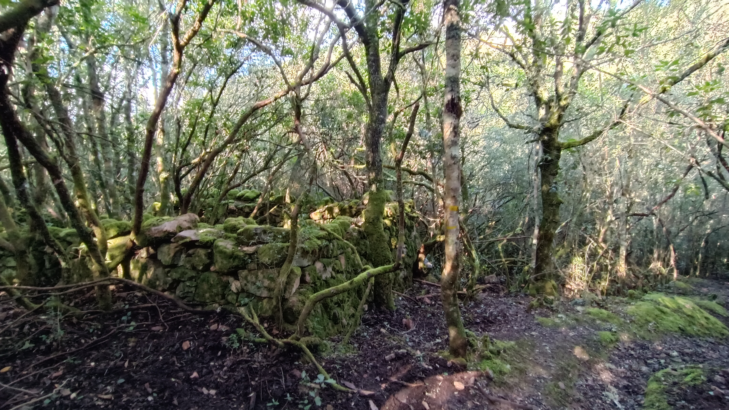 After 600 meters, you will reach a trail junction. Leave the orange Mare e Monti markers and follow the narrower path to the right, marked in yellow, towards U Mansu / Pruniciale Loop. The path descends slightly and then climbs through dense maquis shrubland until you reach the abandoned hamlet of Pruniciale. Follow the path that descends to the right beneath a large ruined house; you will pass a bread oven. The ruins can be explored with caution by the more adventurous. From there, descend along the path bordered by a dry-stone wall to the BULIGA stream (ford crossing).